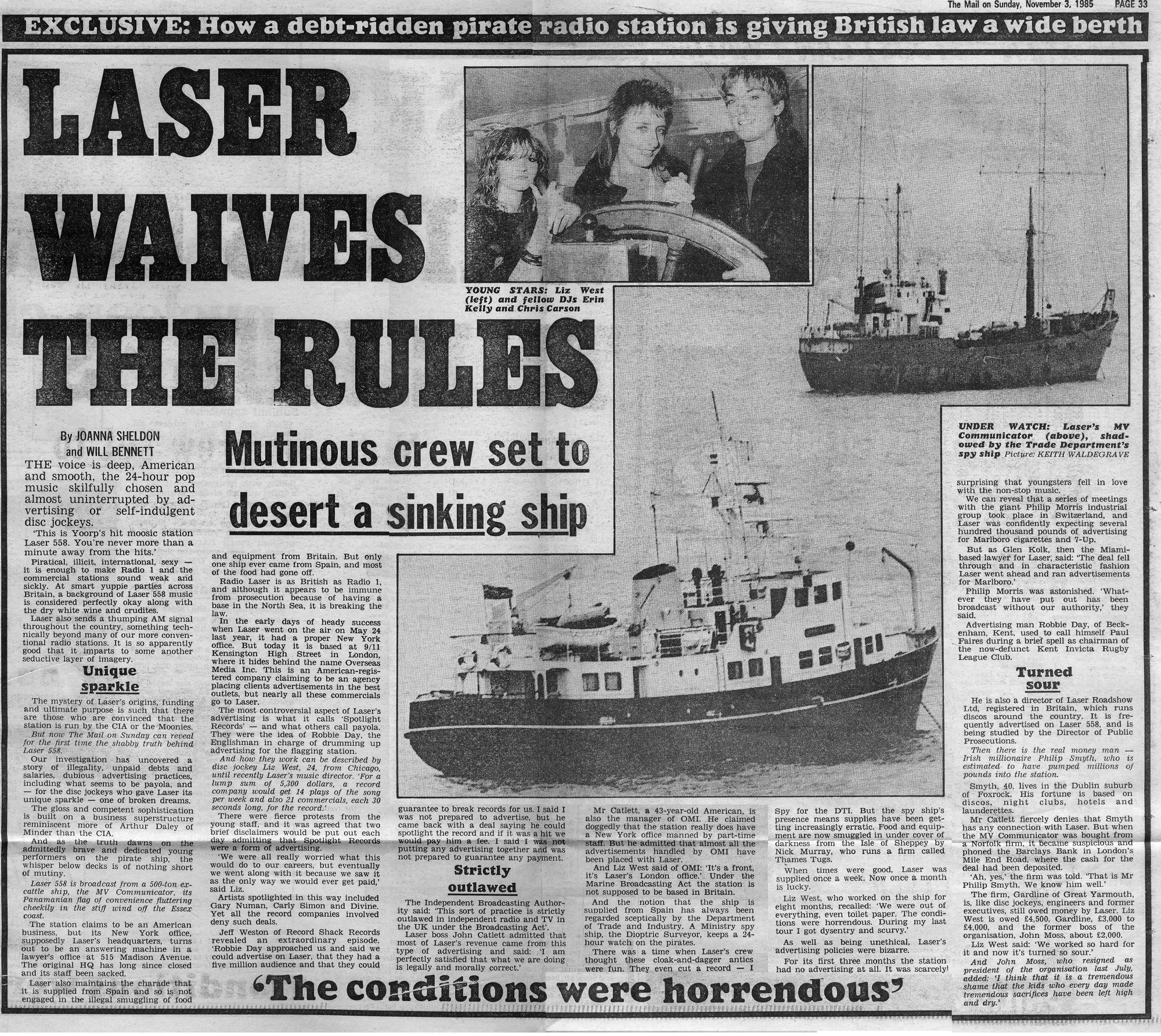Mail on Sunday, 3rd November 1985. Click on the article to enlarge. |