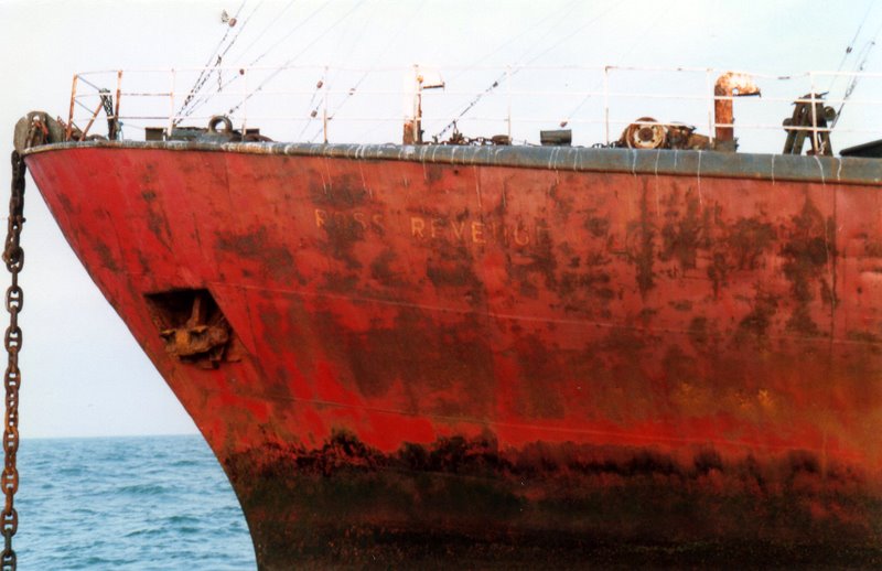 Chris Cooper was heard on Radio Caroline over Christmas 1989/New Year 1990. Following the collapse of the giant mast and the Dutch police raid, not to mention six years at sea, the mv Ross Revenge was not looking its best. He has very kindly shared his photos with The Pirate Radio Hall of Fame. |