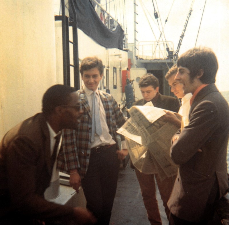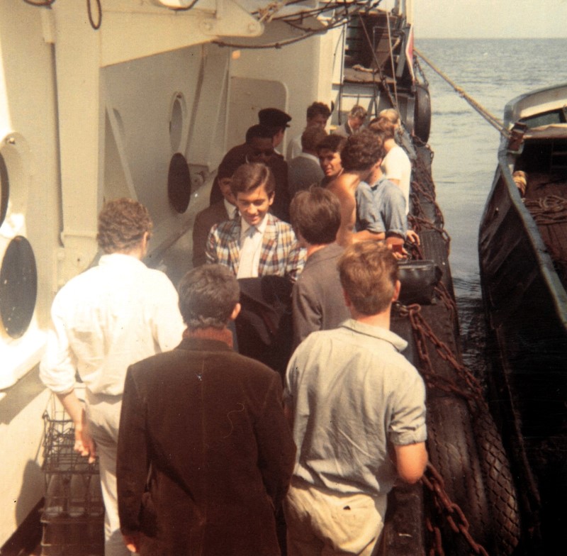 ![]() Kilroy, Tom Edwards, Kerry Clarke, Ian MacRae and Roger Day, waiting to board the tender. |