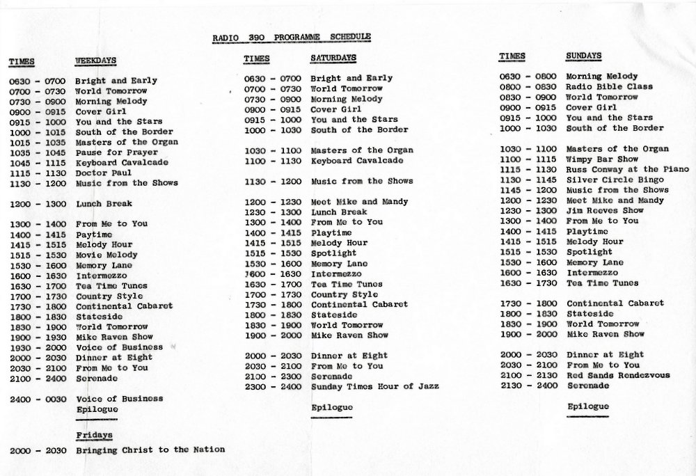 ![]() Information about presenters working for Radio 390 in 1967. Click to enlarge. |
