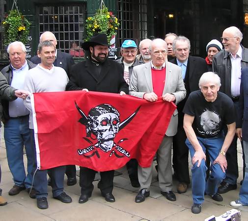 The group is joined by Caroline's current station manager Peter Moore as Steve Conway takes their photo and Roger Day lurks in the background. |