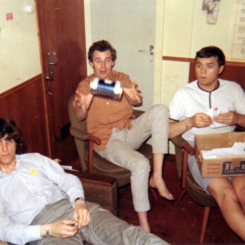 ![]() Ian MacRae catches a can of beer, alongside Johnnie Walker and Keith Hampshire. |