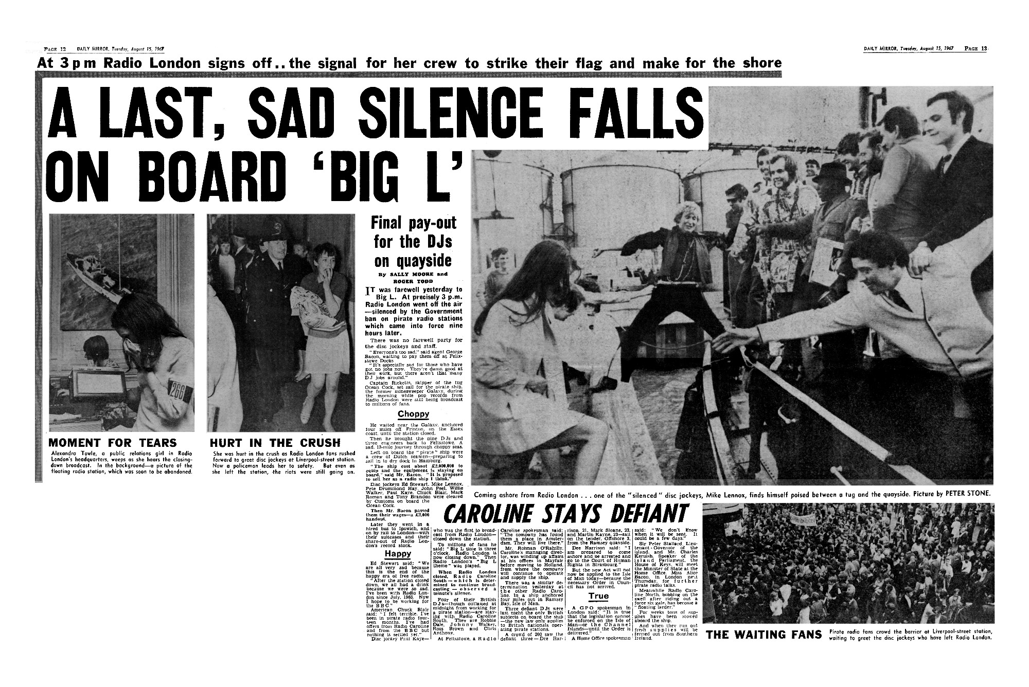 15th August 1967 - centre page spread in the Daily Mirror: