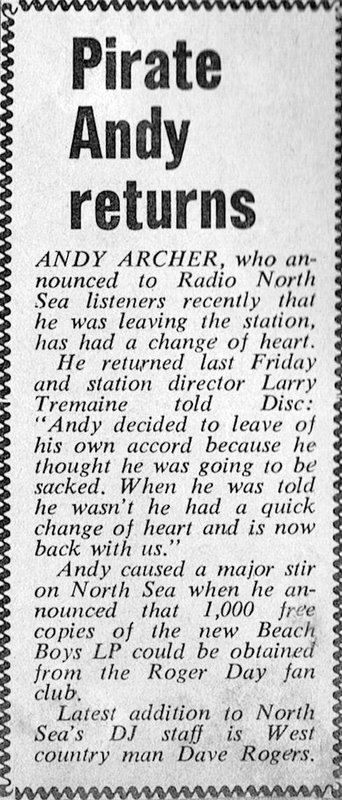 ‘Disc’, week-ending 5th September 1970. From Geoff Quick's scrapbook, kindly provided by Carol Quick.