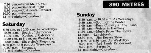 A couple of correspondents have kindly provided newspaper cuttings giving offshore stations' programme schedules.