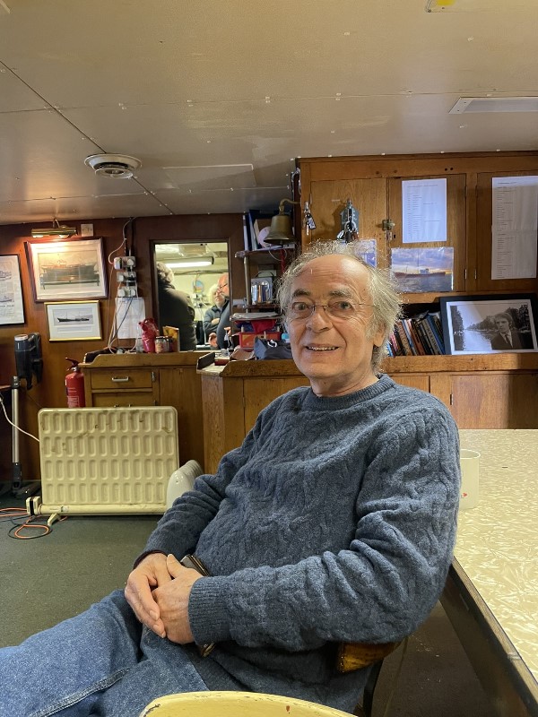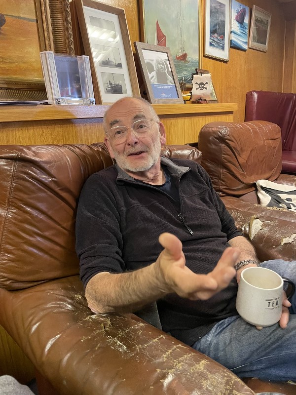 ![]() Another visitor to the ship, Robb Eden (centre), deep in conversation with Nick Richards and Steve Kent.