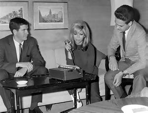 ![]() Larry Dean (left) and Ron O'Quinn interview singer Nancy Sinatra. There is another photo of them here. |